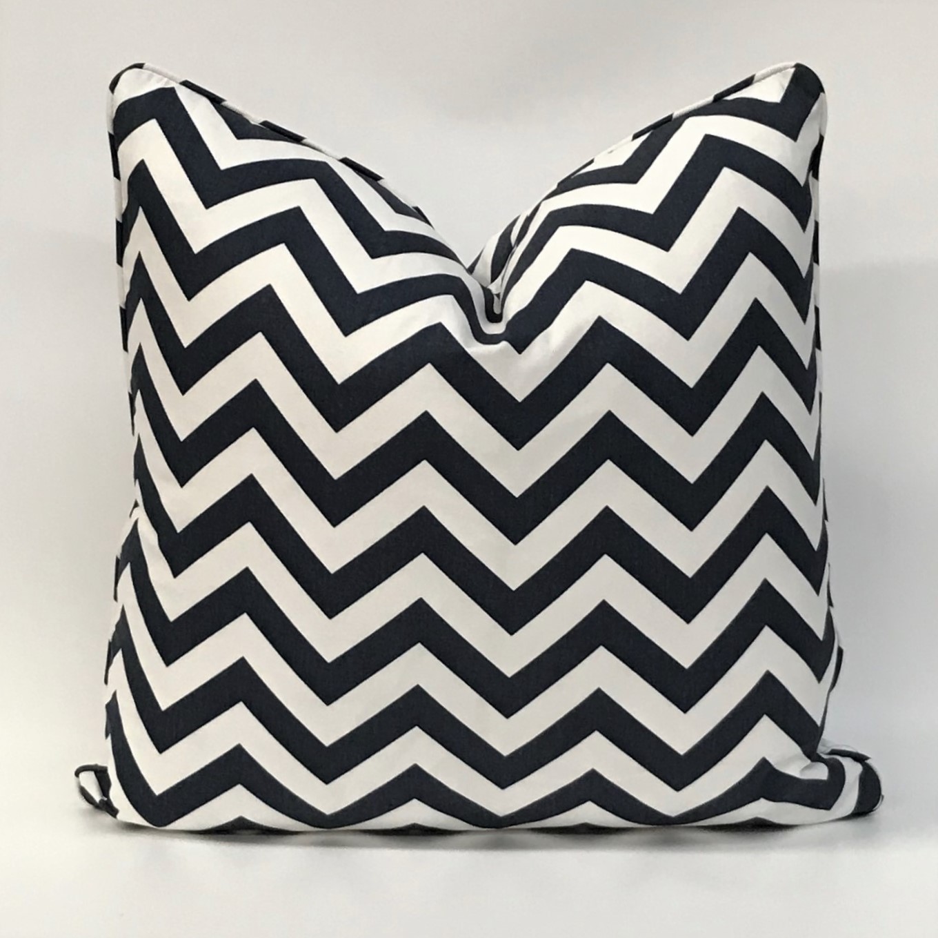 Printed cotton cushion cover finished in Premier Prints Navy Zig Zag design.